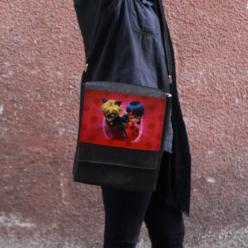 کیف دوشی چی چاپ طرح کارتون کودک انیمیشن دختر کفشدوزکی و پسر گربه ای Ladybug