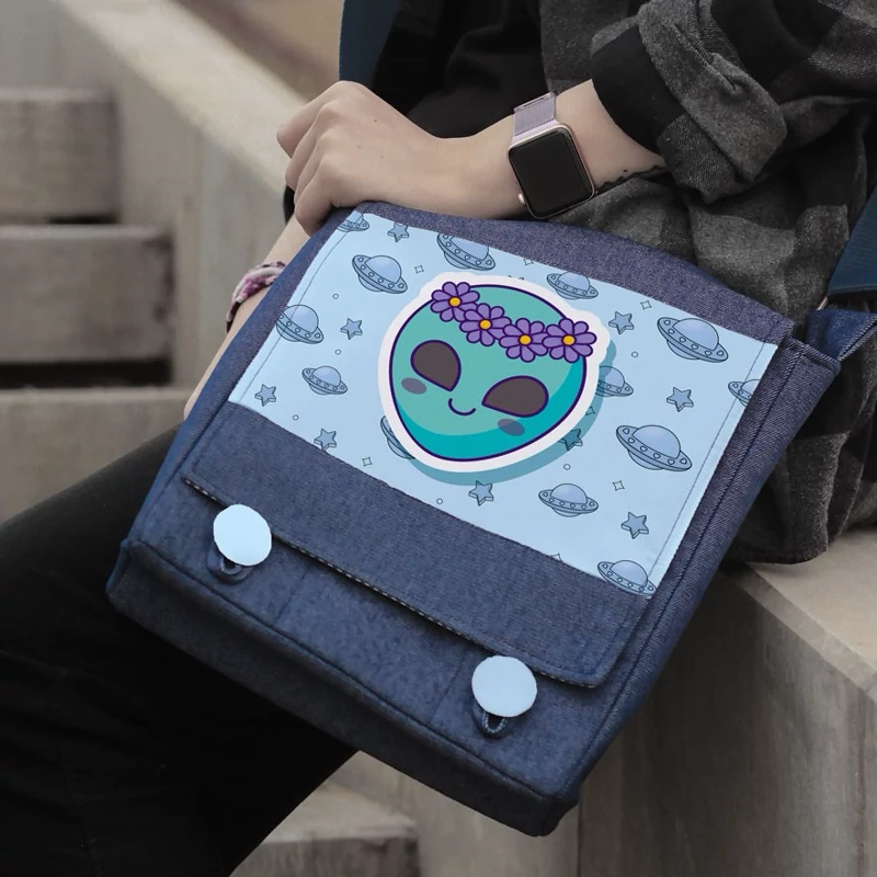 کیف دوشی چی چاپ طرح آدم فضای کیوت Cute alien کد 65823