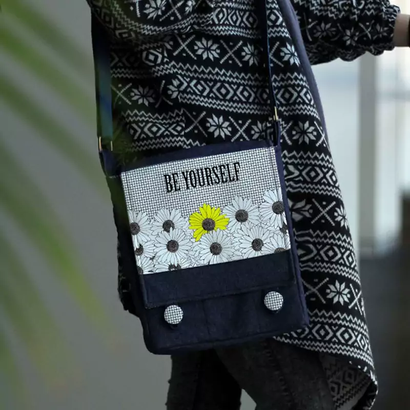 کیف دوشی چی چاپ طرح خودت باش Be yourself کد 65902 آبی
