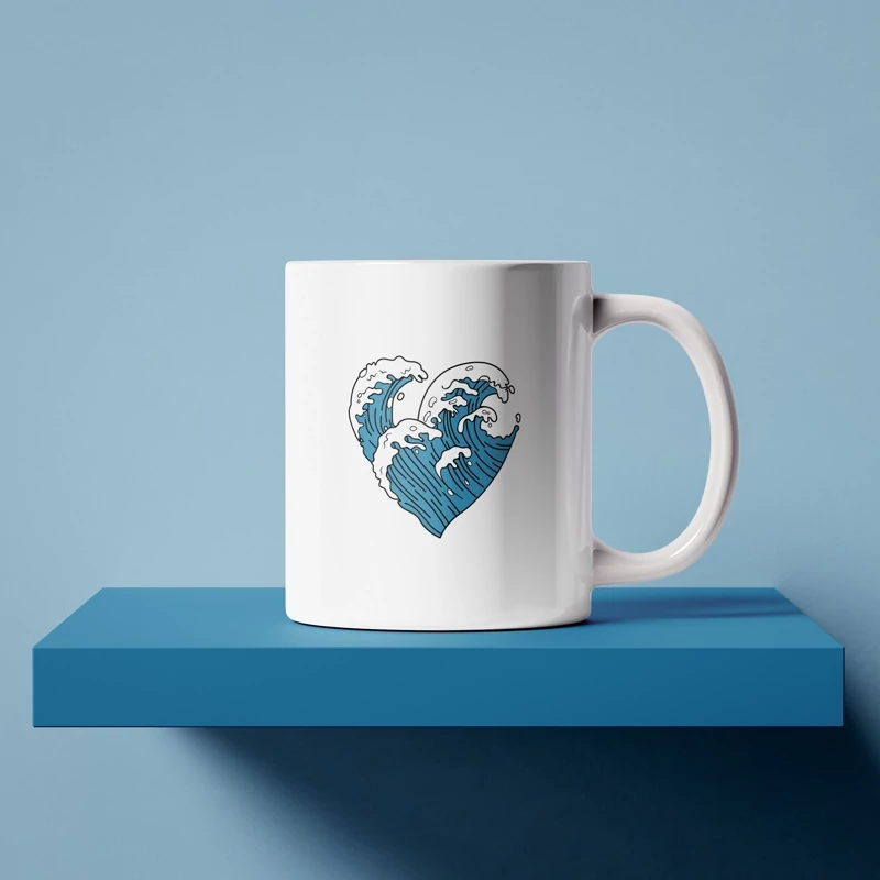 لیوان ماگ سرامیکی طرح نقاشی موج ژاپنی و قلب japanese draw