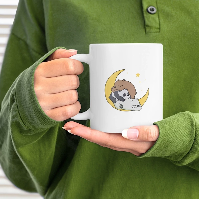 لیوان ماگ سرامیکی طرح خرس های پچول و کله فندقی و ماه Free We Bare Bears