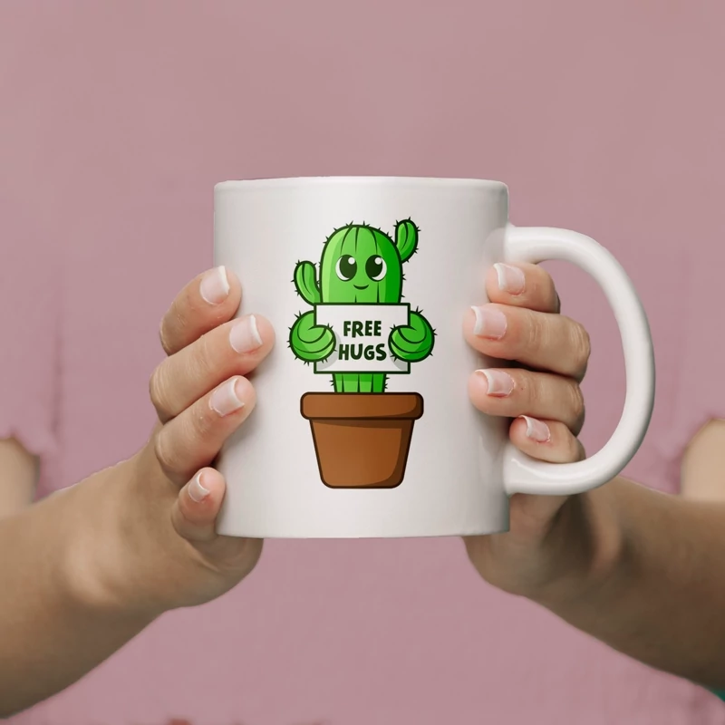 لیوان ماگ سرامیکی طرح کاکتوس بغل رایگان Free hugs