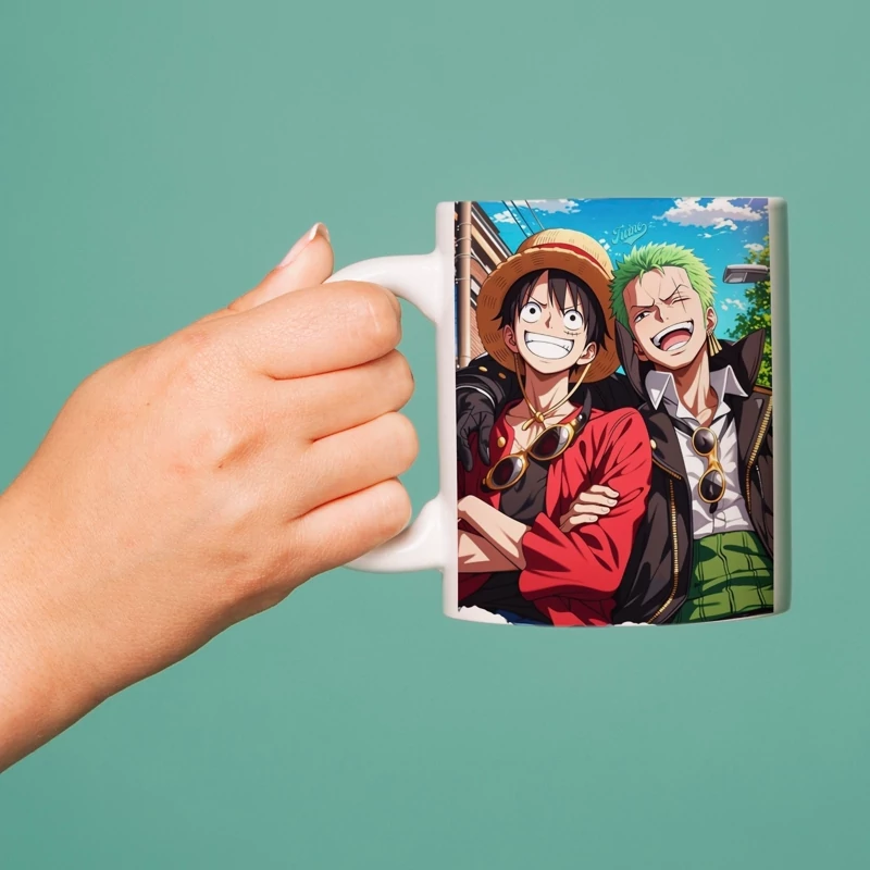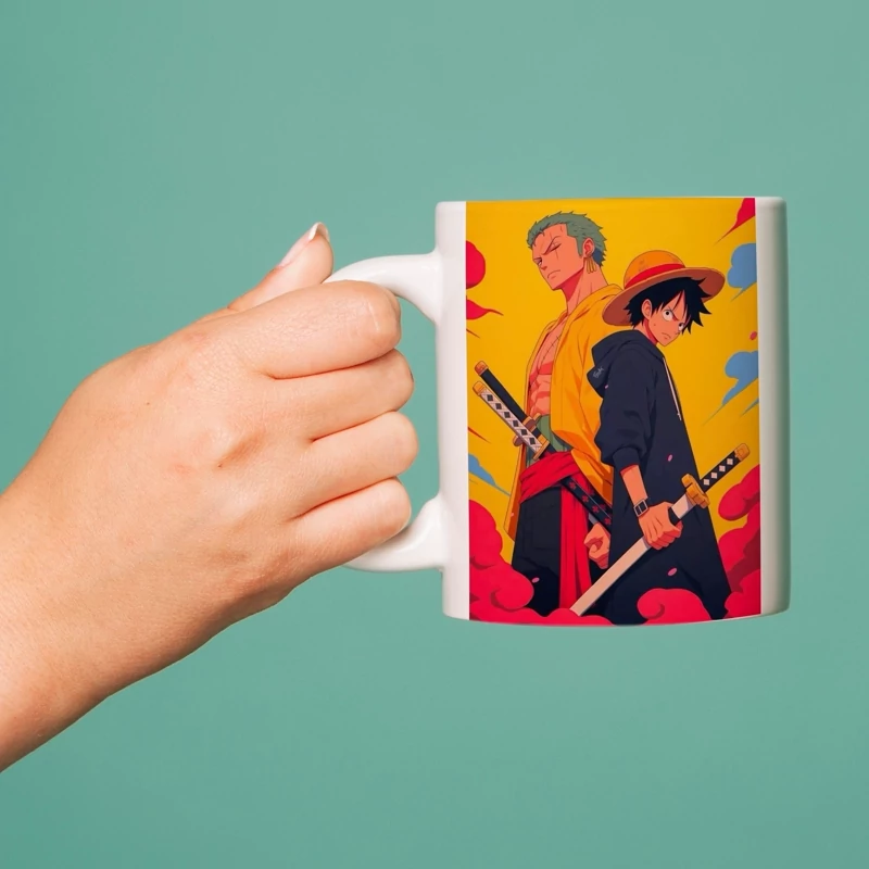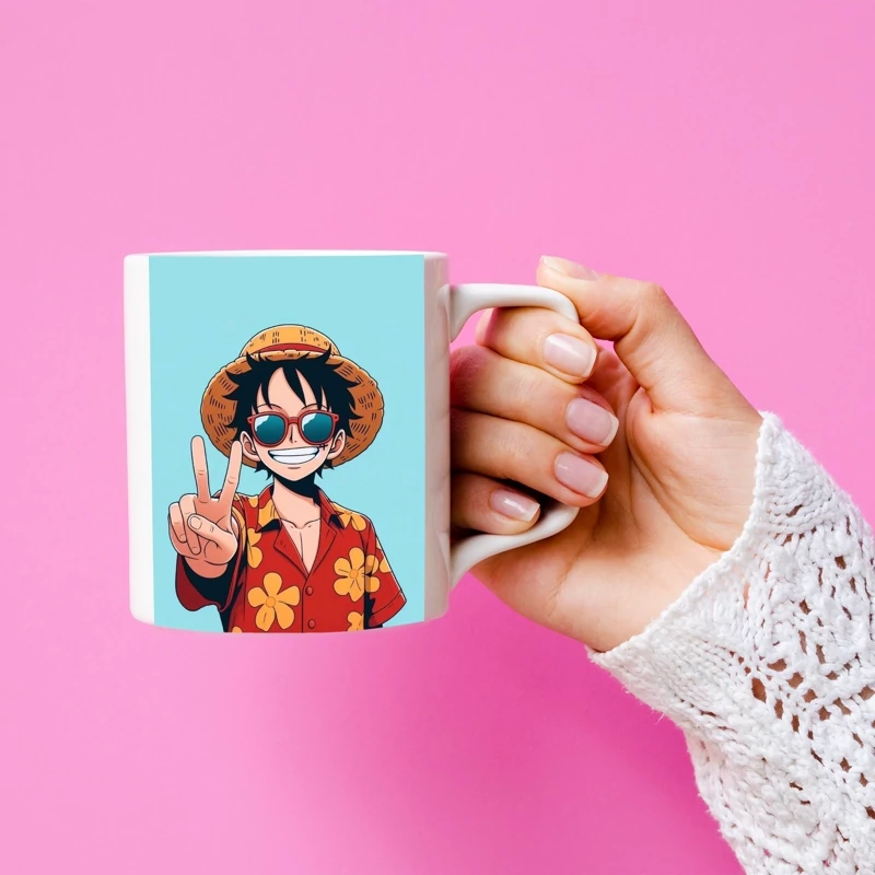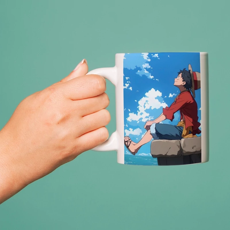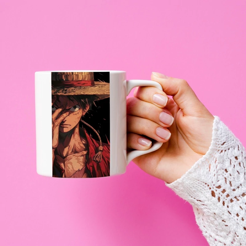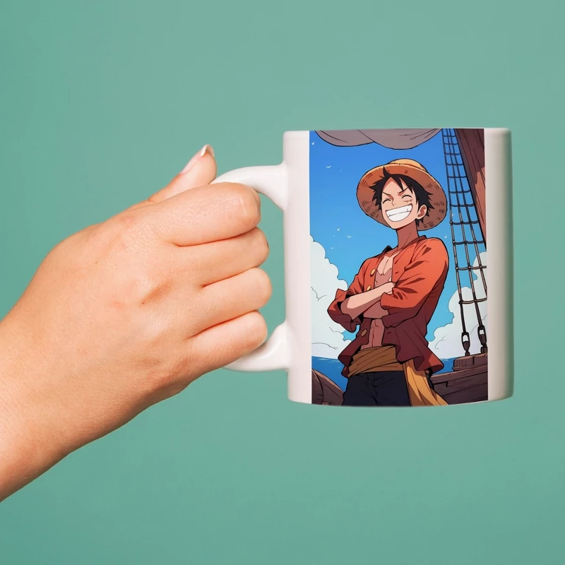 ماگ دسته و داخل مشکی انیمه وان پیس one piece ( لوفی )