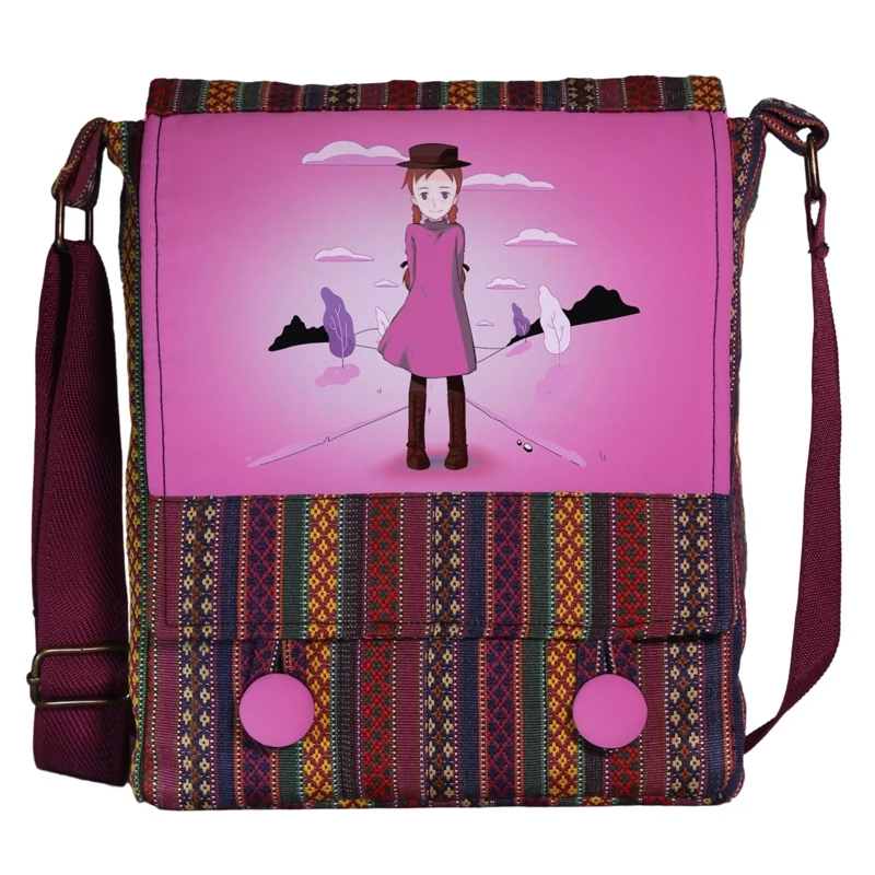 کیف دوشی دخترانه چی چاپ طرح آنشرلی یا آنه شرلی با پارچه سنتی