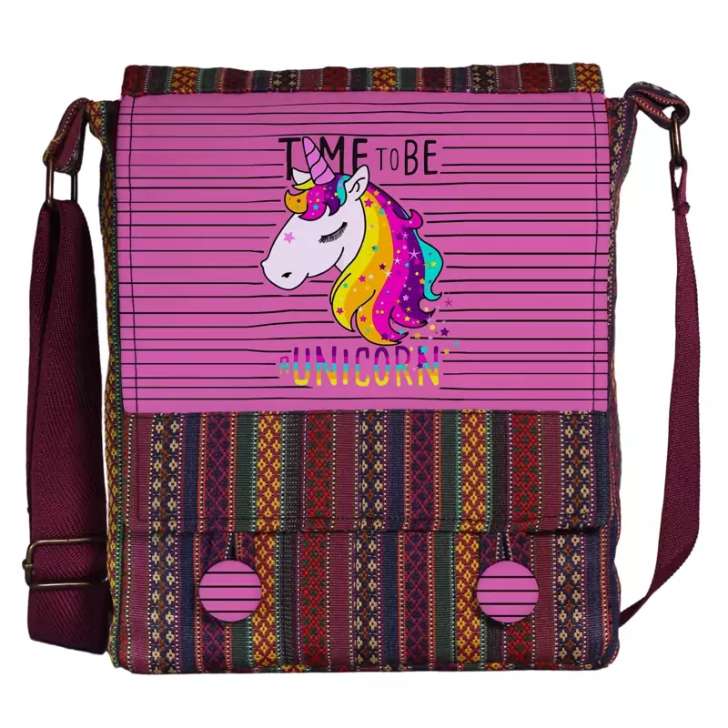 کیف دوشی چی چاپ طرح اسب تکشاخ صورتی با پارچه سنتی کد Pink unicorn