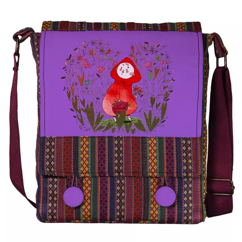کیف دوشی چی چاپ طرح قصه شنل قرمزی با پارچه سنتی کد بنفش