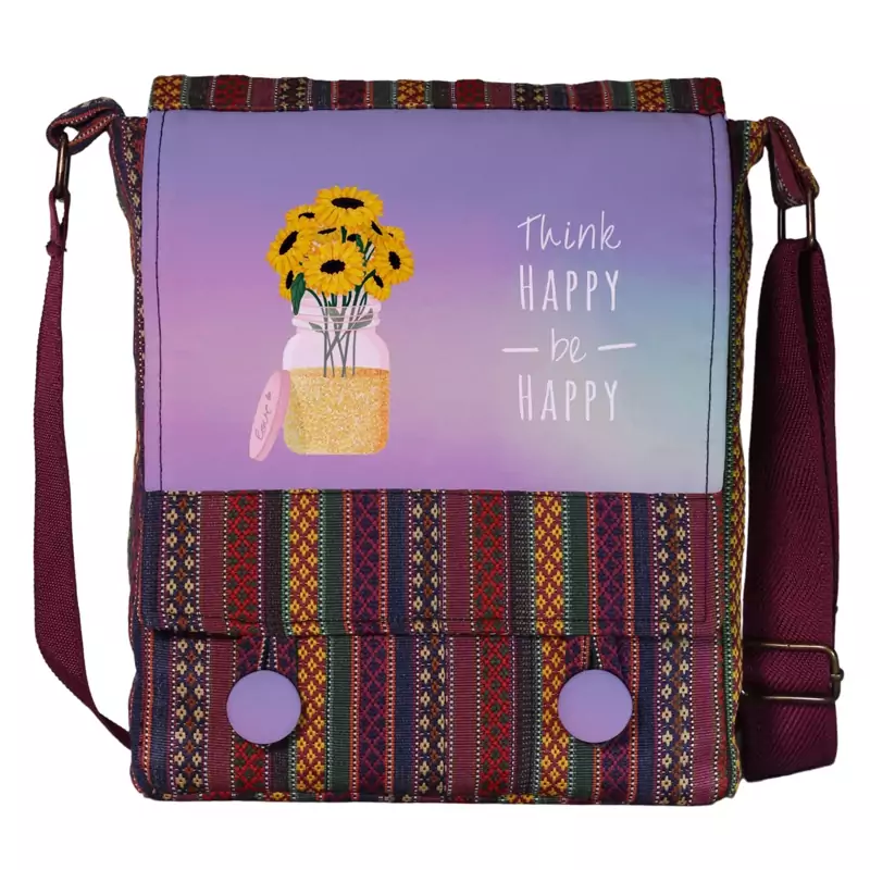 کیف دوشی چی چاپ طرح دخترانه گل آفتابگردان با پارچه سنتی کد be happy