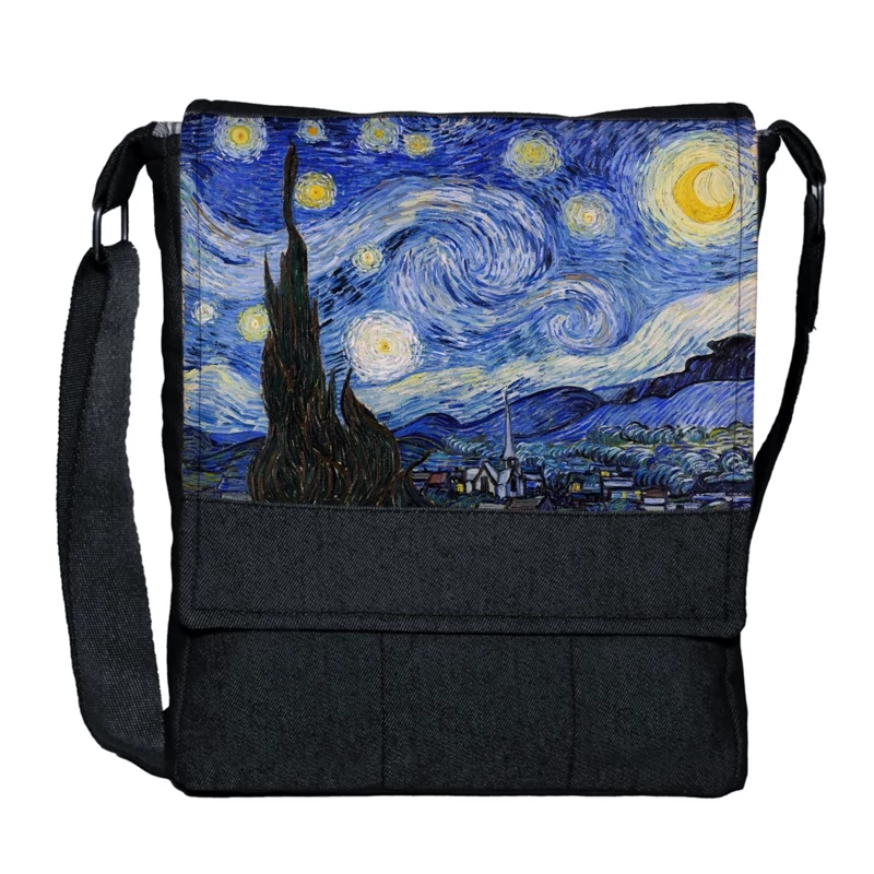 کیف دوشی شب پرستاره ونگوک با پارچه جین مشکی starry night van gogh