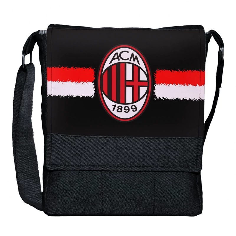 کیف دوشی چی چاپ طرح تیم فوتبال آث میلان با پارچه جین مشکی کد Ac milan