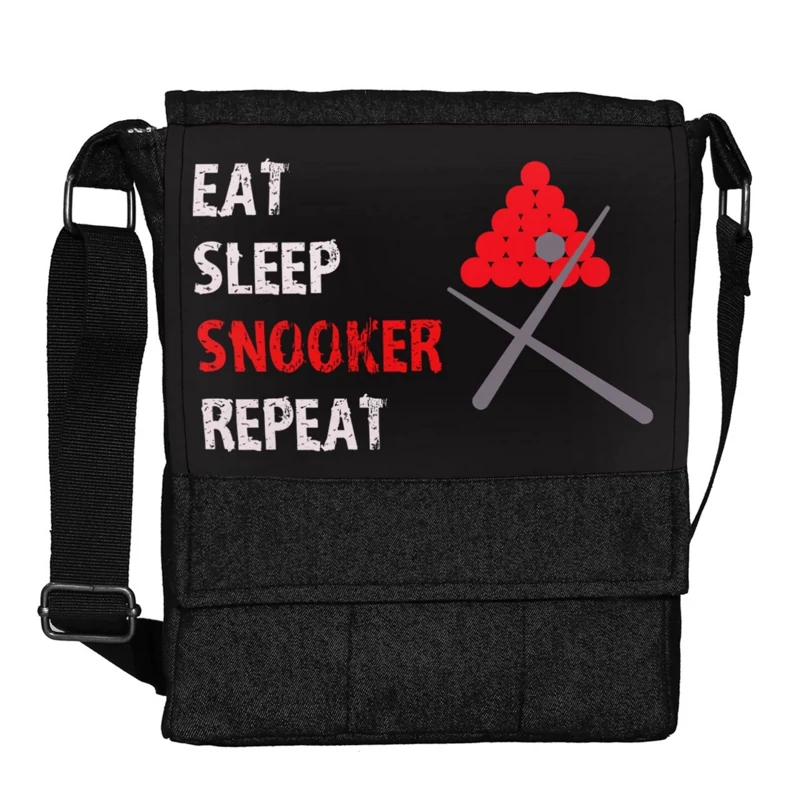 کیف دوشی چی چاپ طرح بازی بیلیارد و اسنوکر با پارچه جین مشکی کد Snooker