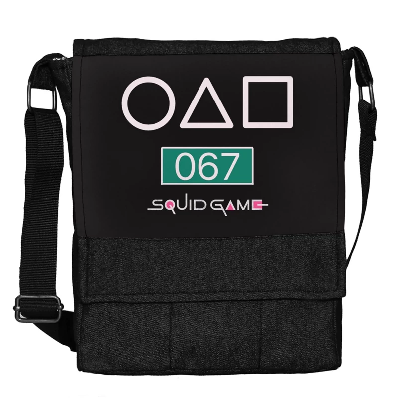 کیف دوشی چی چاپ طرح سریال کره ای سکویید گیم Squid Game با پارچه جین مشکی کد 067