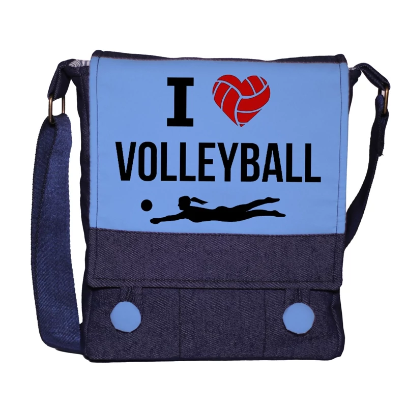 کیف دوشی چی چاپ طرح والیبالی با پارچه جین آبی کد عشق به والیبال
