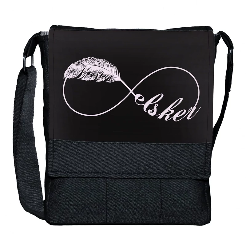 کیف دوشی چی چاپ طرح ورزش سوارکاری با پارچه جین مشکی کد عشق به اسب