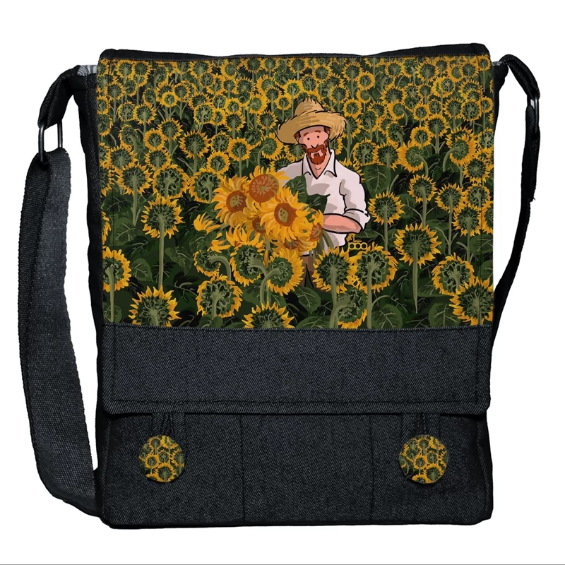 کیف دوشی دخترانه طرح ونسان ونگوگ در مزرعه گل آفتابگردان Vincent van Gogh