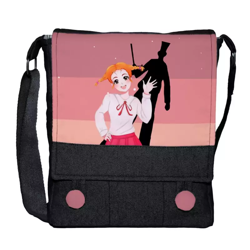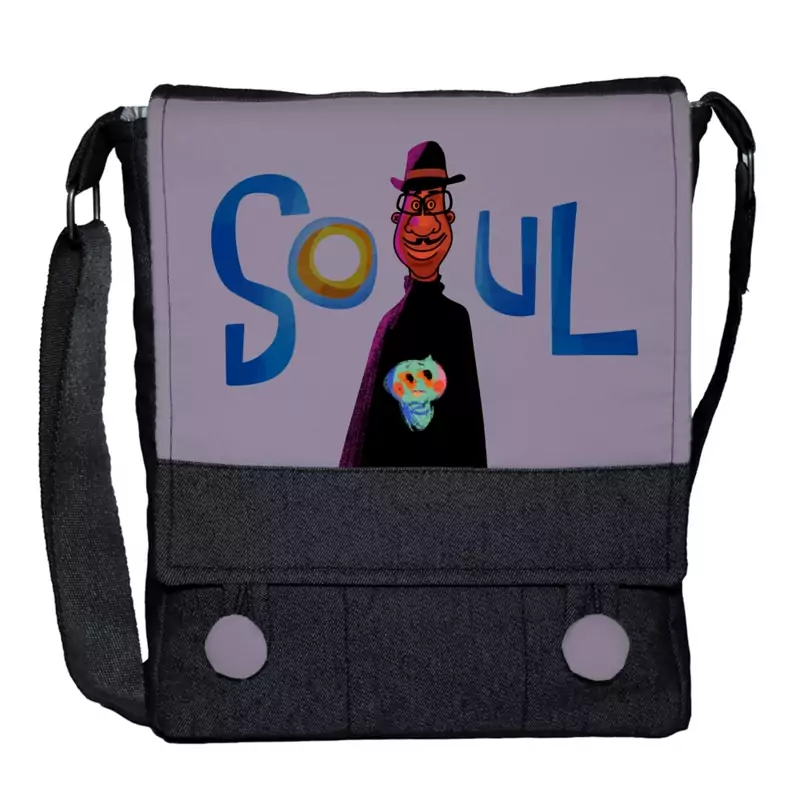 کیف دوشی چی چاپ طرح انیمیشن روح کد Soul با پارچه جین مشکی