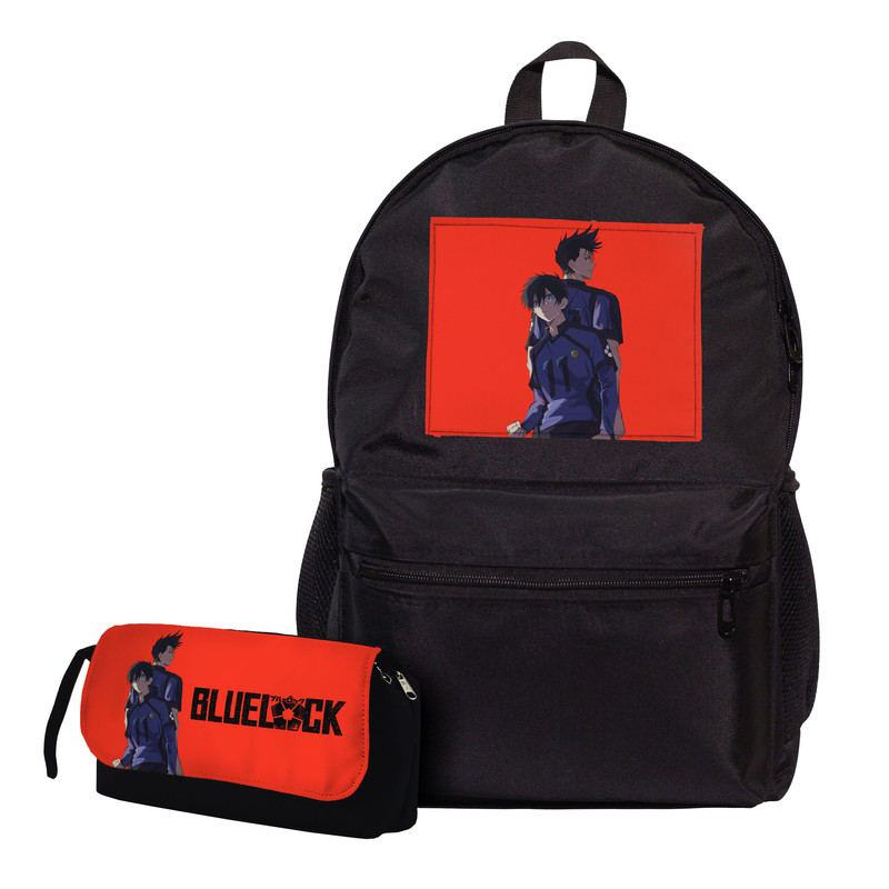 کوله پشتی طرح انیمه فوتبالی قفل آبی blue lock به همراه جامدادی