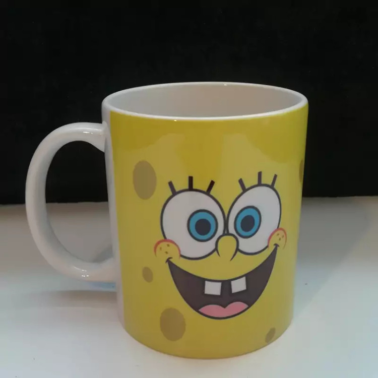 ماگ سرامیکی ،سفید رنگ، سایز 11 oz ،طرح باب اسفنجی همراه با زیر لیوانی ،قابل استفاده در ماکروویو، جهت ماندگاری بیشتر طرح، برای شستشوی داخل ماشین ظرفشویی قرار نداهید