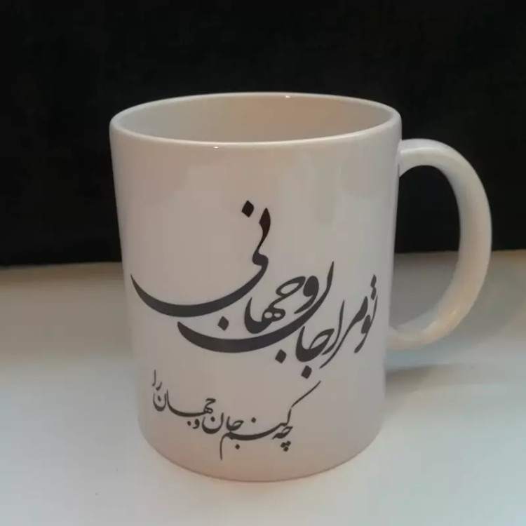 ماگ سرامیکی ،سفید رنگ، سایز 11 oz ،طرح تو مرا جان و جهانی ،قابل استفاده در ماکروویو، جهت ماندگاری بیشتر طرح، برای شستشوی داخل ماشین ظرفشویی قرار نداهید