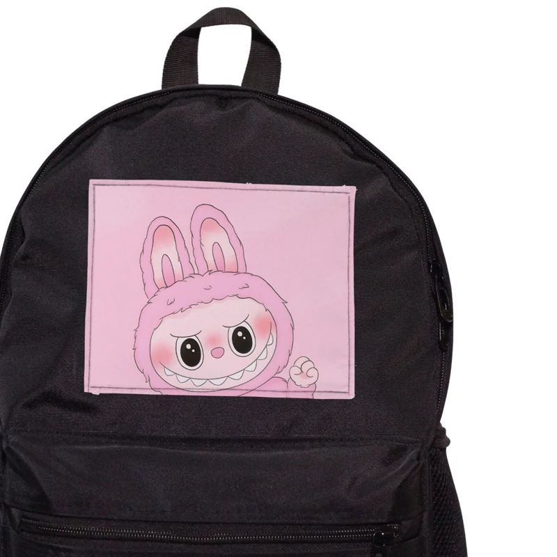 کوله پشتی مدرسه طرح عروسک لبوبو صورتی لابوبو Labubu