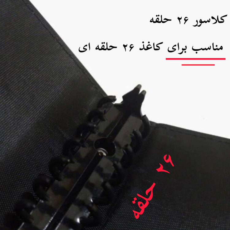 جلد این کلاسور ها از جنس پارچه می باشد ،این کلاسور مخصوص کاغذ 26 سوراخ می باشد { کلاسور ۲۶ حلقه مناسب برای کاغذ ۲۶ حلقه ای} این محصول علاوه بر دارا بودن فضای کافی جهت نوشتن و یادداشت برداری به راحتی قابل حمل و نقل است . کلاسور به عنوان یه دفتر با قابلیت اضافه و کم کردن کاغذ ها به یک ویژگی به صرفه و کاربردی برای استفاده طولانی مدت تبدیل شده است.