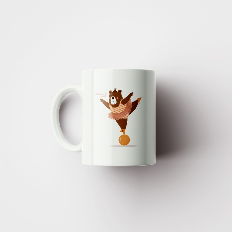 طرح ماگ: نقاشی خرس بامزه در حال رقص باله