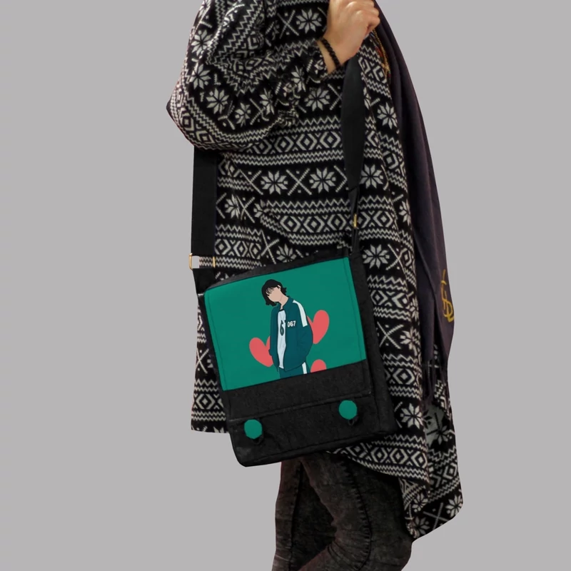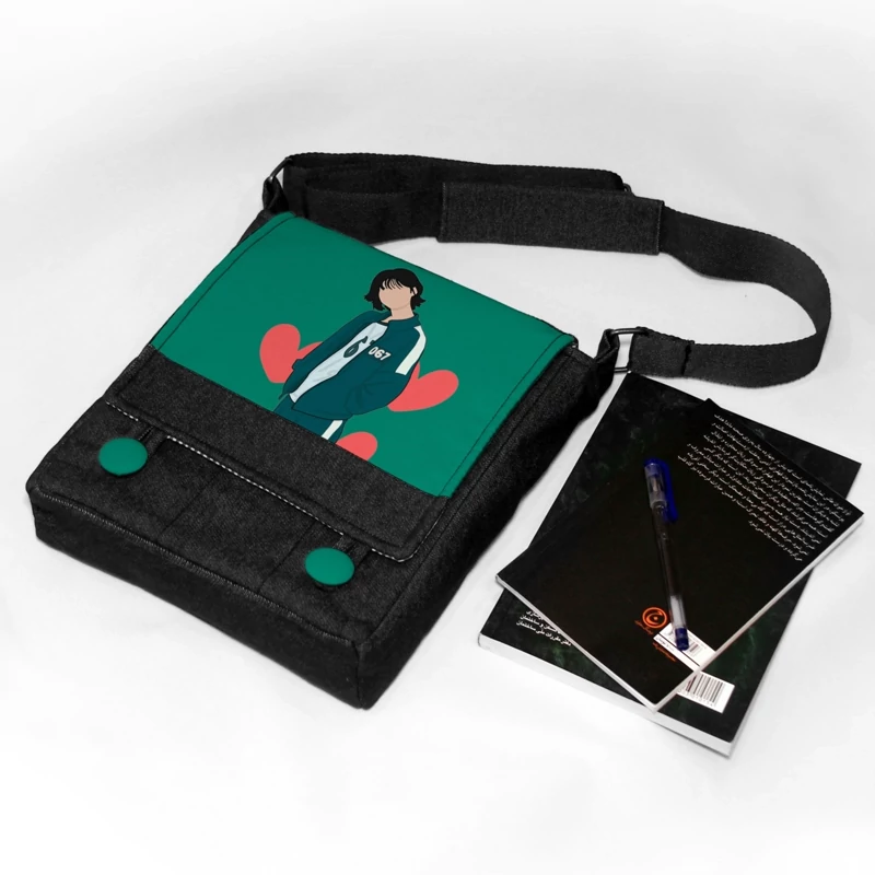 کیف دوشی چی چاپ طرح اسکویید گیم Squid Game دکمه دار کد سه بیوک sae byeok