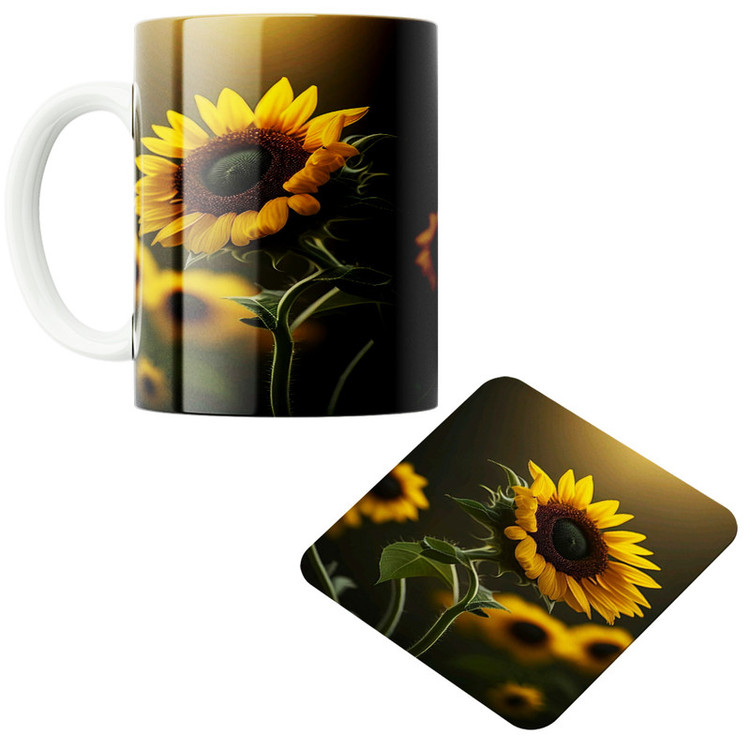 طرح ماگ: گل افتابگردان کد 02 به همراه زیر لیوانی