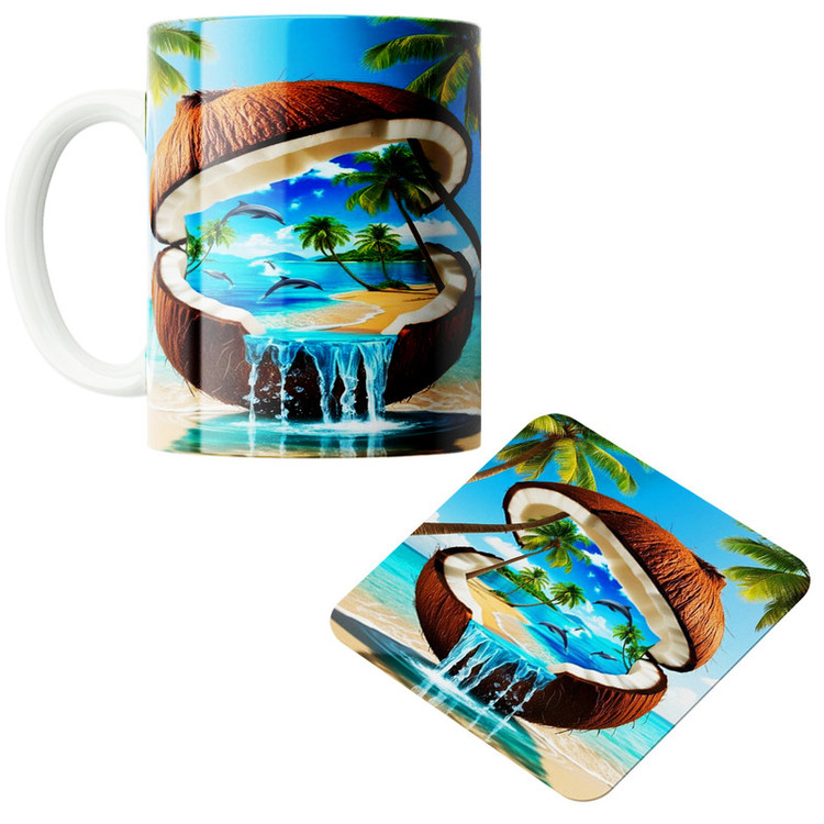 طرح ماگ: نارگیل کد 01 به همراه زیر لیوانی