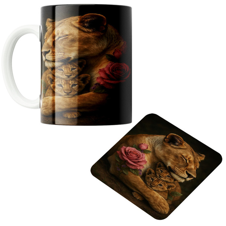 طرح ماگ: توله شیر کد 01 به همراه زیر لیوانی