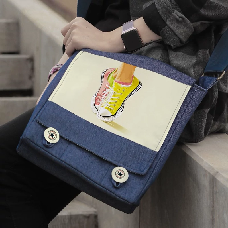 کیف های دوشی چی چاپ با پارچه جین تولید میشود و در بینهایت طرح در دسترس شما قرار گرفته.