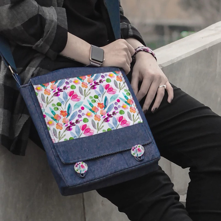 کیف دوشی چی چاپ طرح نقاشی آبرنگی گل گلی کد 65905 آبی