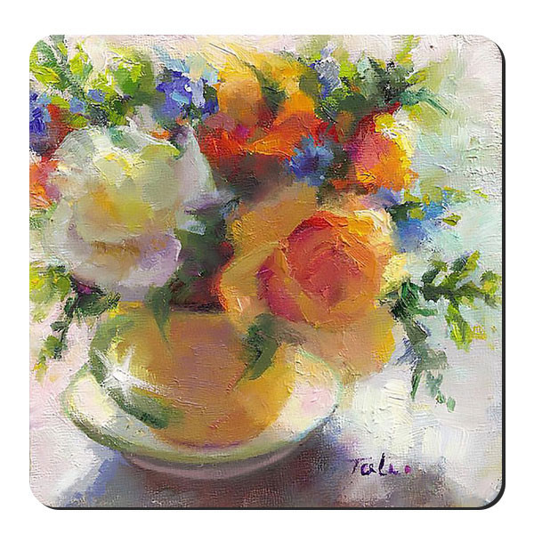 زیر لیوانی طرح نقاشی گل و گلدان کد nzl93