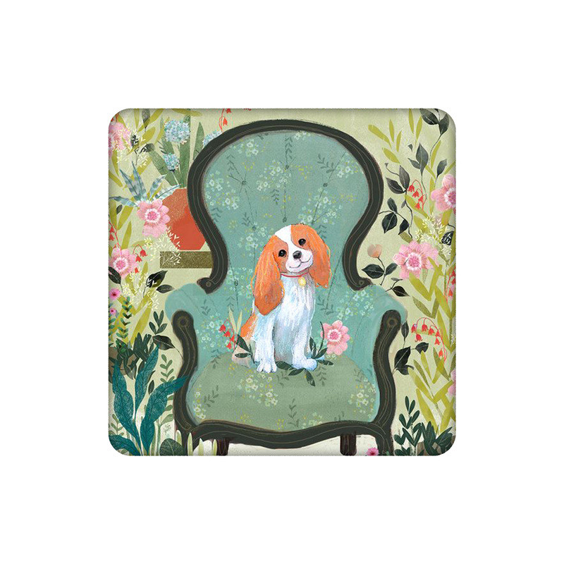 زیرلیوانی طرح سگ خوشحال و مبل در بین گلها کد 9179711