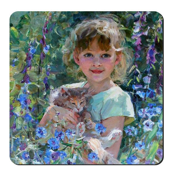 زیر لیوانی طرح دختر و گربه کد nzl701