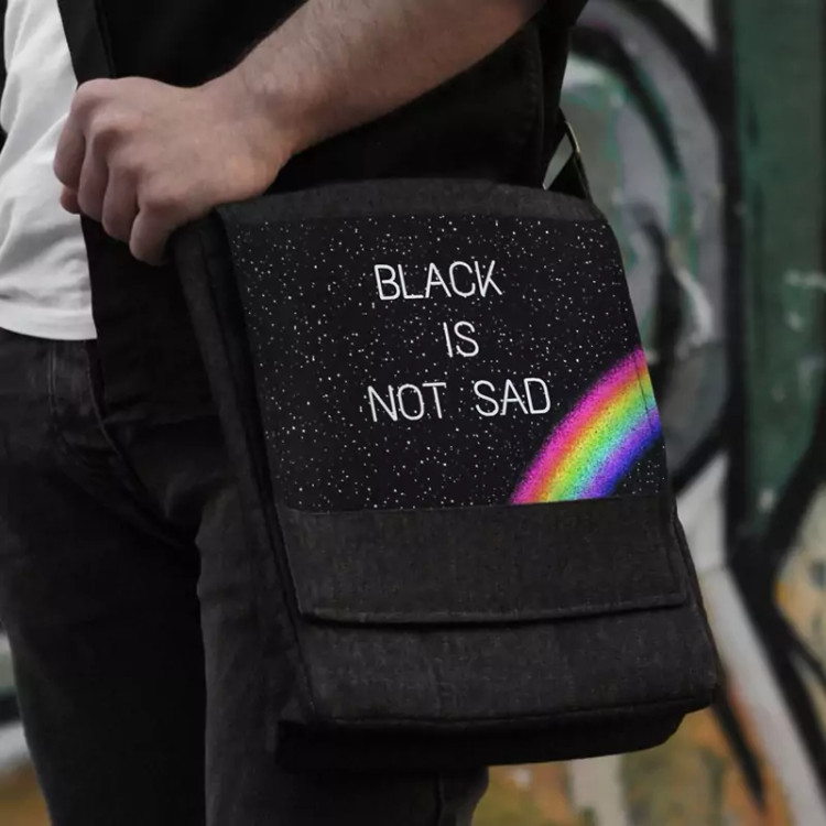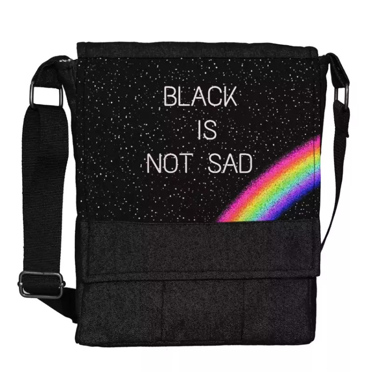 کیف دوشی چی چاپ طرح رنگین کمان Black is not sad کد 65868