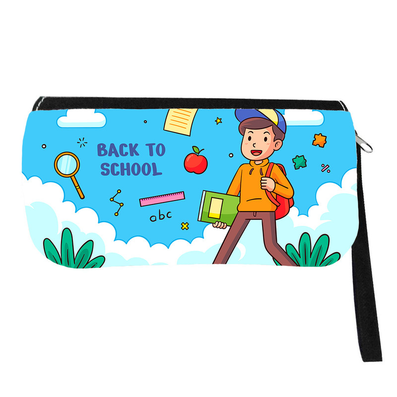 جامدادی پارچه ای است و دارای دو محفظه زیپی جداگانه در زیر درپوش می باشد و درپوش آن چسبی است و در کنار بدنه دارای بند است. ابعاد آن در حدود 5*12*22 سانتیمتر است.
