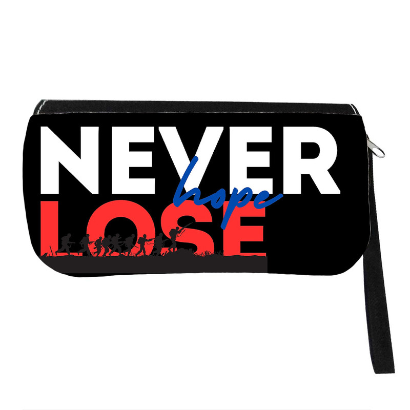 جامدادی پارچه ای است و دارای دو محفظه زیپی جداگانه در زیر درپوش می باشد و درپوش آن چسبی است و در کنار بدنه دارای بند است. ابعاد آن در حدود 5*12*22 سانتیمتر است.