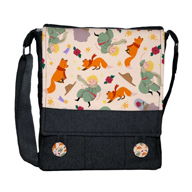 کیف دوشی چی چاپ طرح شازده کوچولو و روباه کد 65879 مشکی