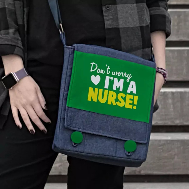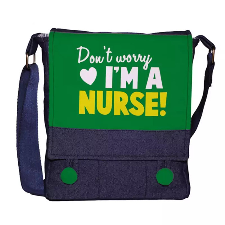 کیف دوشی چی چاپ جین آبی طرح پرستاری Nurse کد 65951 آبی