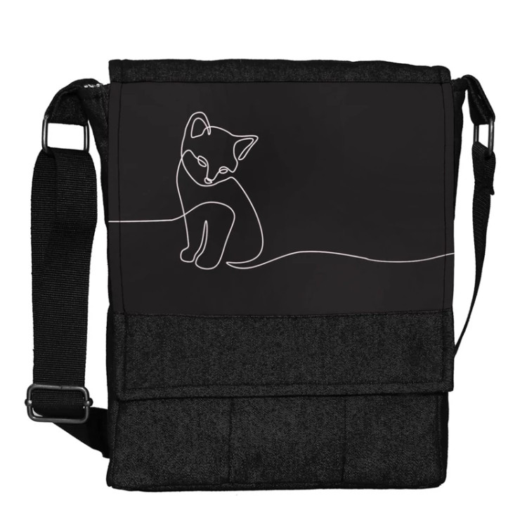 کیف دوشی چی چاپ طرح گربه کیوت لاین آرت Cute Cat line art