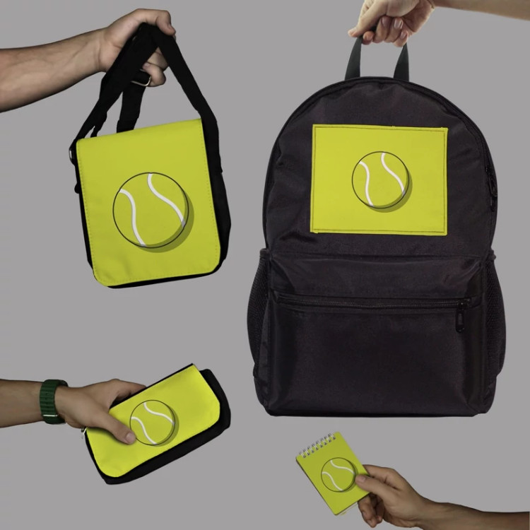 ست دانش آموزی توپ ورزشی تنیس tenis شامل کوله و جامدادی و دفترچه و کیف دوشی