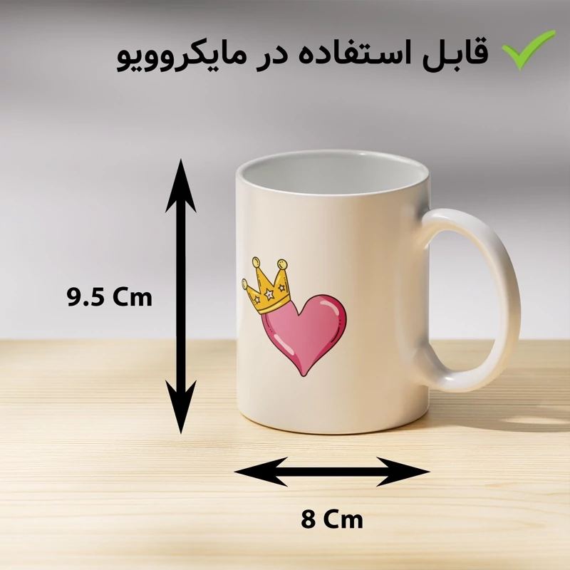 لیوان ماگ سرامیکی طرح ملکه و پادشاه عشق و قلب Love