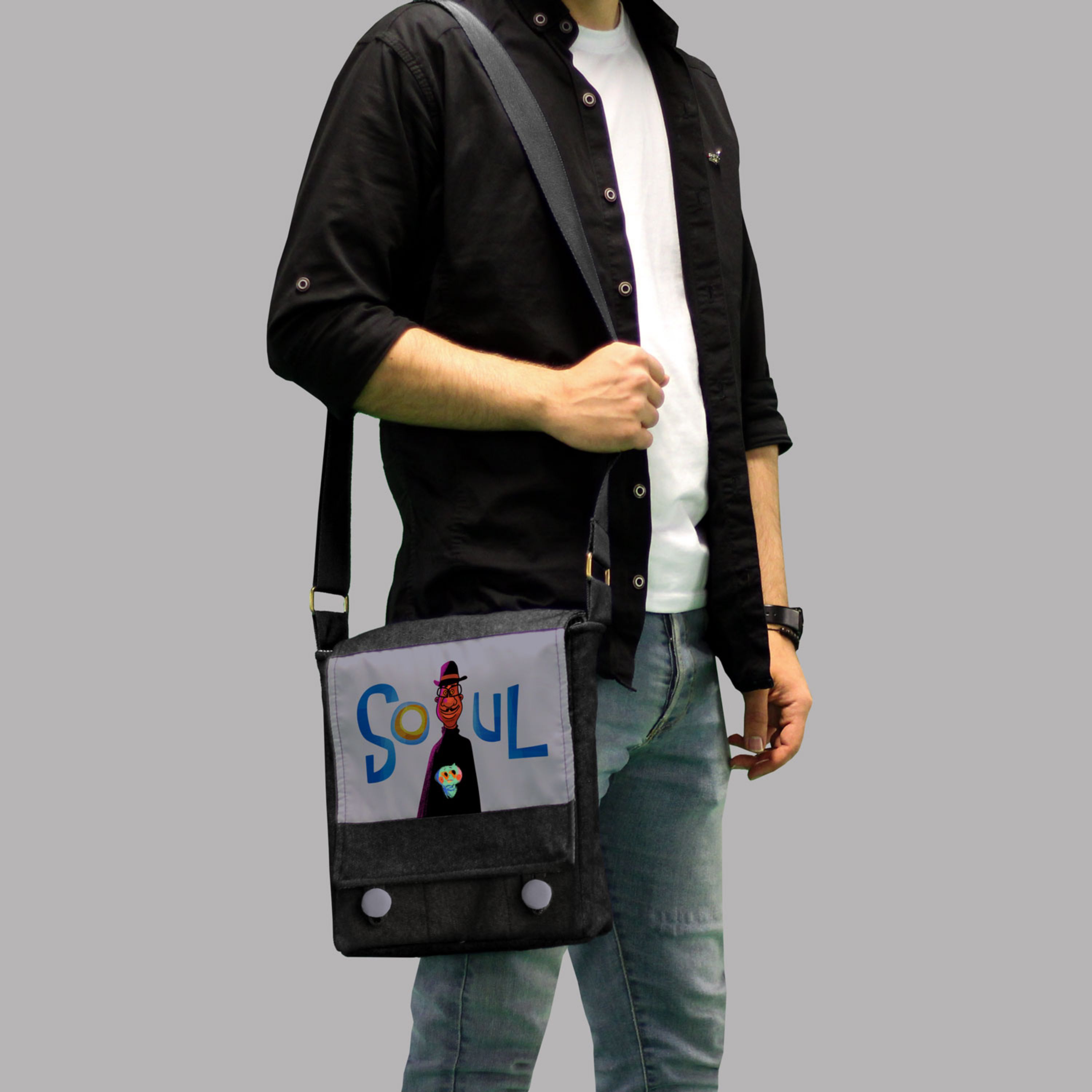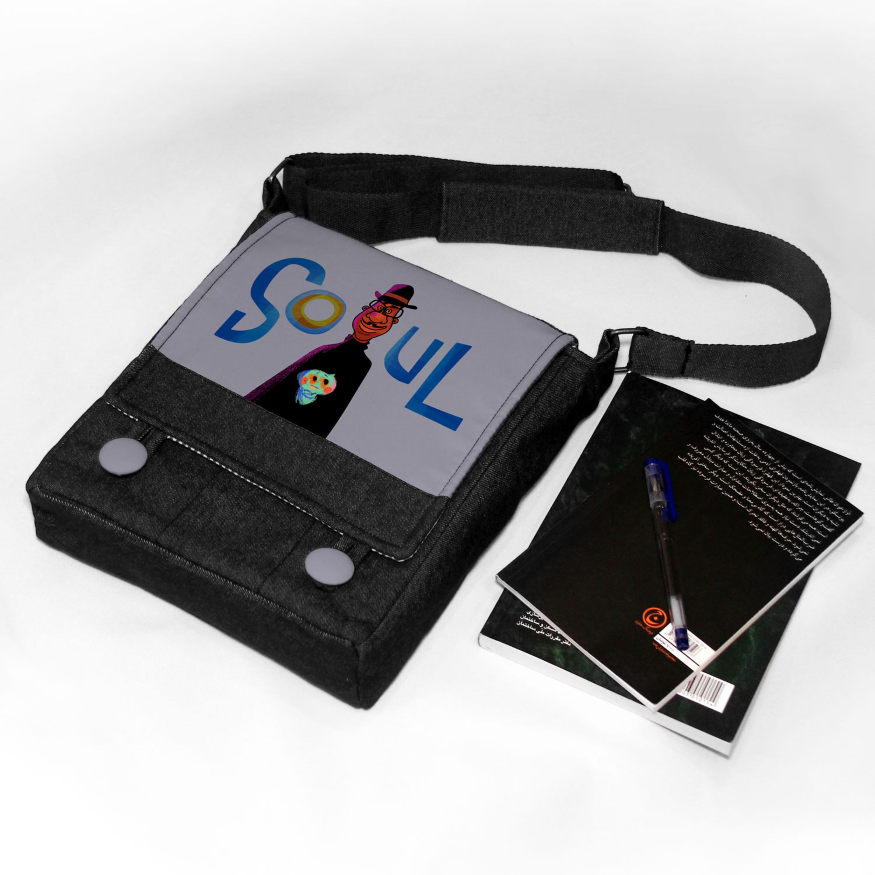 کیف دوشی چی چاپ طرح انیمیشن روح کد Soul با پارچه جین مشکی