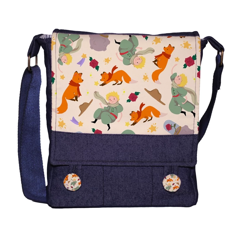 کیف دوشی چی چاپ طرح شازده کوچولو و روباه کد 65879 آبی