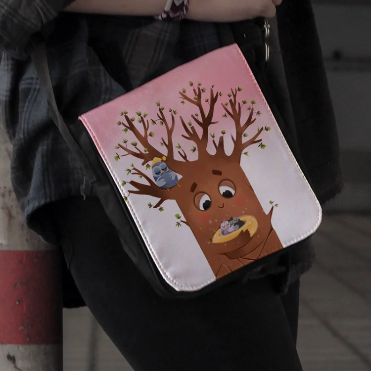 کیف دوشی بچگانه طرح درخت مهربان و بچه چغدها کد 248