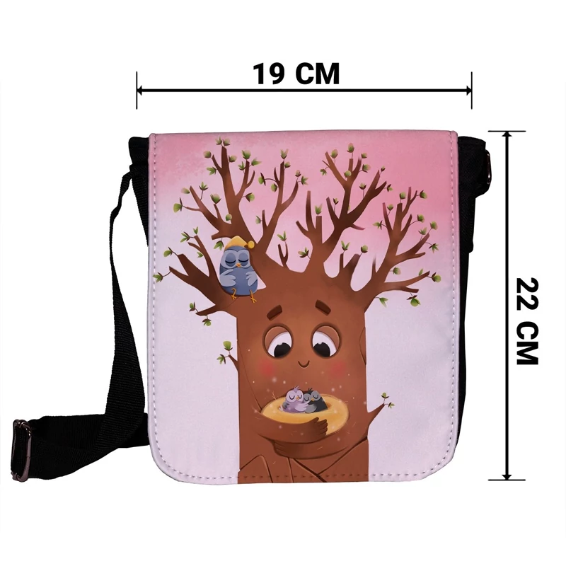 کیف دوشی بچگانه طرح درخت مهربان و بچه چغدها کد 248
