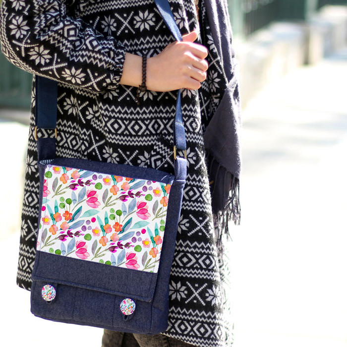 کیف رودوشی دخترانه چی چاپ مدل گل گلی