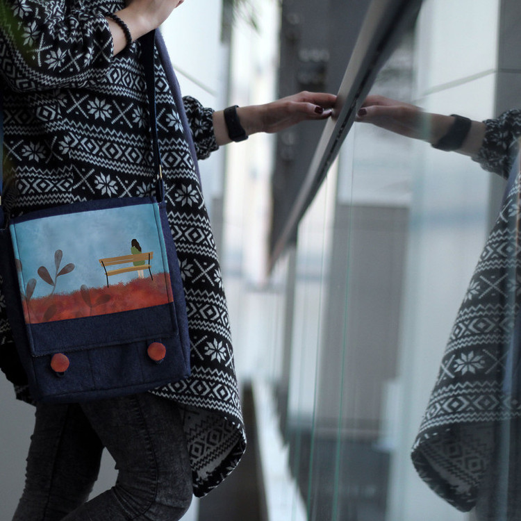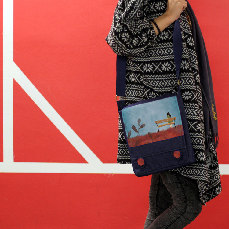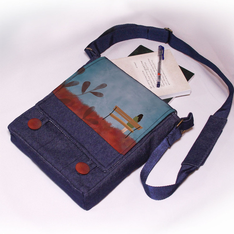 کیف رودوشی دخترانه چی چاپ مدل دختر و نیمکت کد 65157