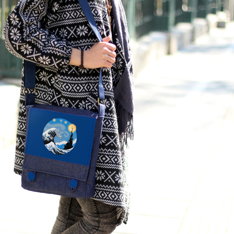کیف رودوشی دخترانه چی چاپ مدل موج کاناگاوا در شب پرستاره کد 65178