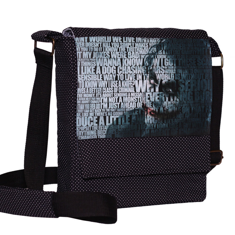 سایر توضیحاتطول بند : ۱۵۰ سانتیمتر ابعاد : ۲۴x۲۷x۷ سانتیمتر جنس قسمت طرح : پارچه ای نحوه بسته شدن : چسبی دارای دو عدد جیب داخلی